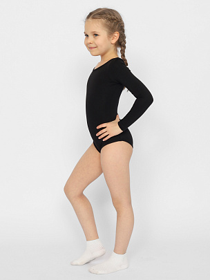 Купальник с длинным рукавом. Вырез горловины и проймы ножек окантованы бейкой из основного полотна.