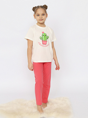 Пижама для девочки (футболка, брюки) экрю