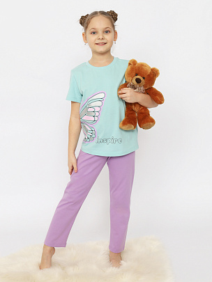 Пижама для девочки (футболка, брюки) светло-бирюзовая
