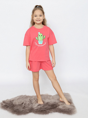 Пижама для девочки (футболка, шорты) коралловая