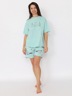 Пижама женская (футболка, шорты) светло-бирюзовая