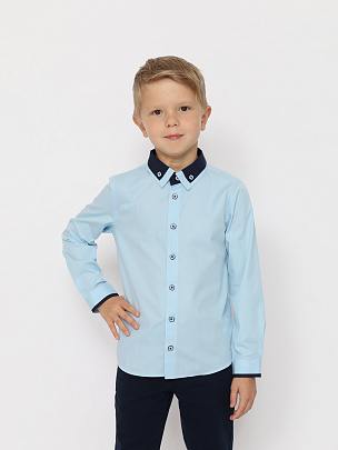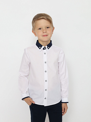 Рубашка-поло для мальчика. Модель с короткими рукавами и отложным воротником. Спереди застежка на пуговицы.