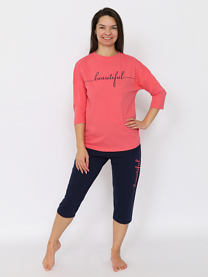 Футболка женская, из тонкого хлопкового трикотажа, украшена принтом.